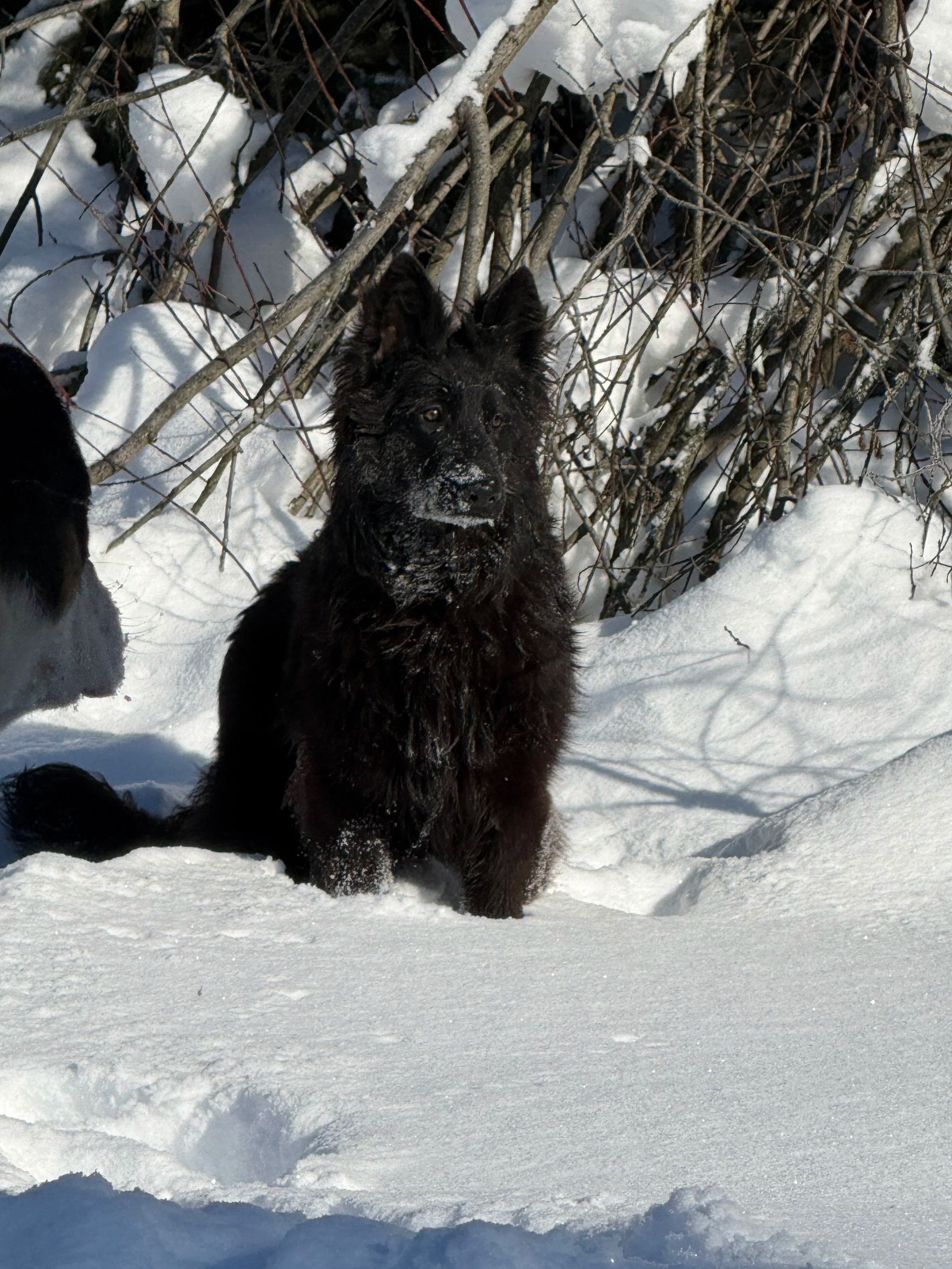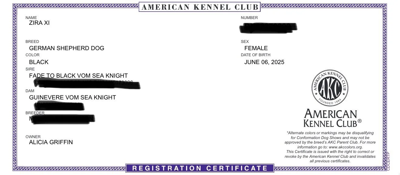 Zira is a beautiful jet black female. She is very spunky and extremely athletic. This girl jumps around like a lemur with grace. She is very bouncy and playful. She loves to run around and play with Keirah and pester Apollo. She is a fun girl to watch play, very submissive girl, and a big sweetheart. She has medium energy level and medium drive. OFA are pending on her till she becomes of age to process them.