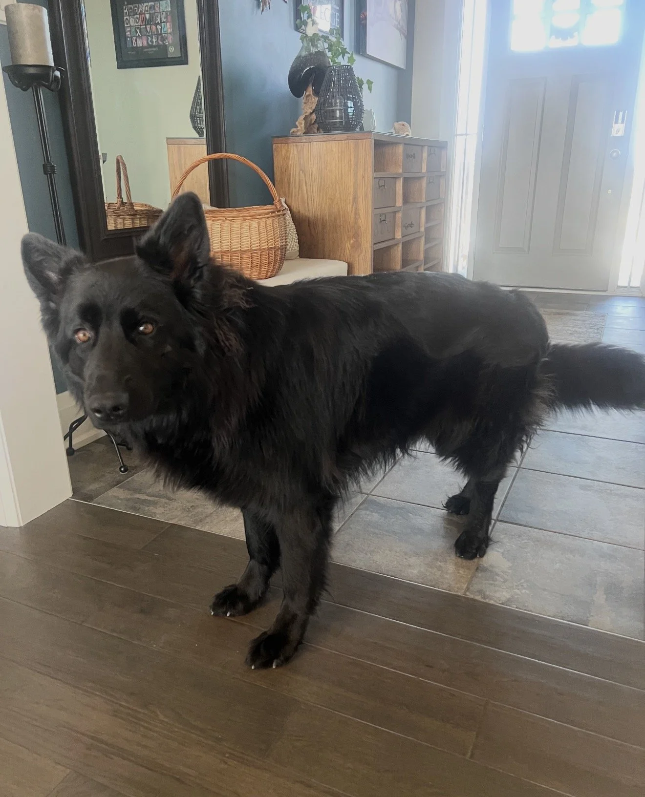 Bella is maturing so nicely with a nice long flowing coat already and getting that black mask! So looks like she’s getting some nice red pigment coming in too! Love how nice this combo produces.