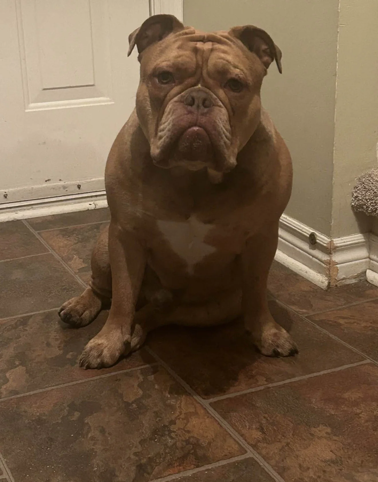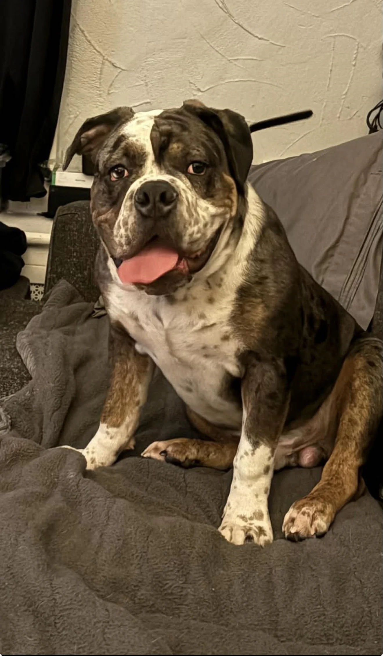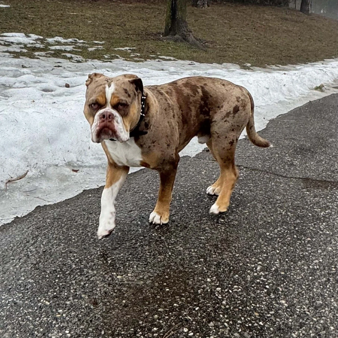 Cyrus at 11 months old. This chunky boy is a nice chocolate merle boy.